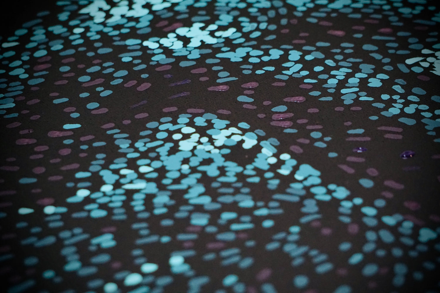 Ein Pen Plotter überträgt diese digitalen Daten mit höchster Präzision auf Leinwand. Durch die Verwendung von Acrylfarbe, Pinsel und Leinwänden entstehen einzigartige Kunstwerke. Kein Punkt ist zufällig – und doch ist kein Bild exakt reproduzierbar.